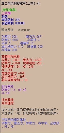 龍之獄炎 刺客龍套裝 全套 頭上下鞋 整套不拆