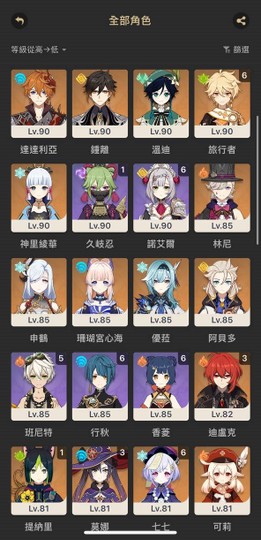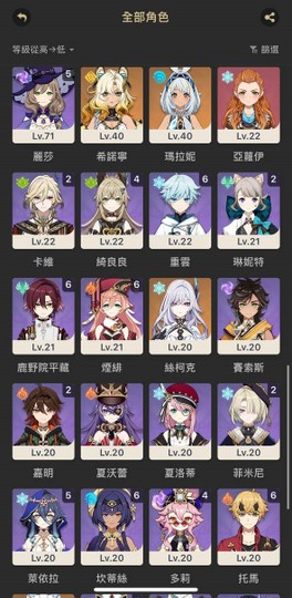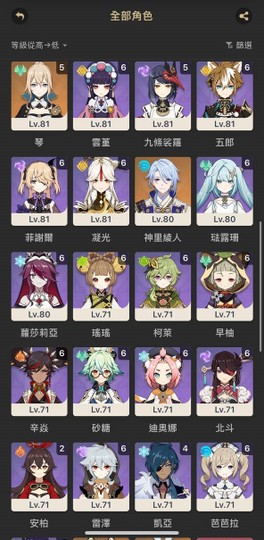【男、60等、41金角、16金武】原神開服60等號 退坑割愛 多隻角色 多原石可挖 共81金 可小議