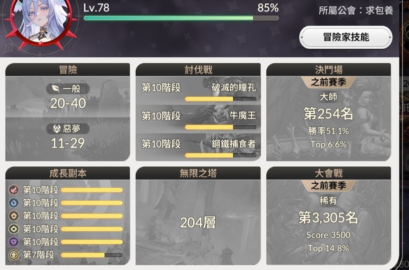 【78等】高進度 穩刷噩夢11-1 舊7 1突朱里1突菲依 6突太烏凱爾 4突神樂