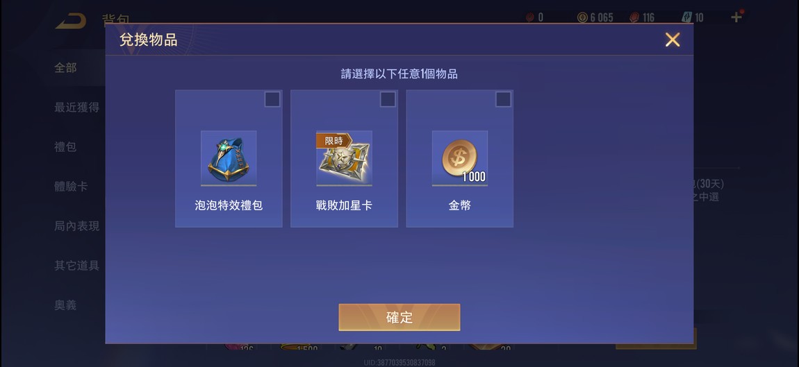 物品種類: 帳號