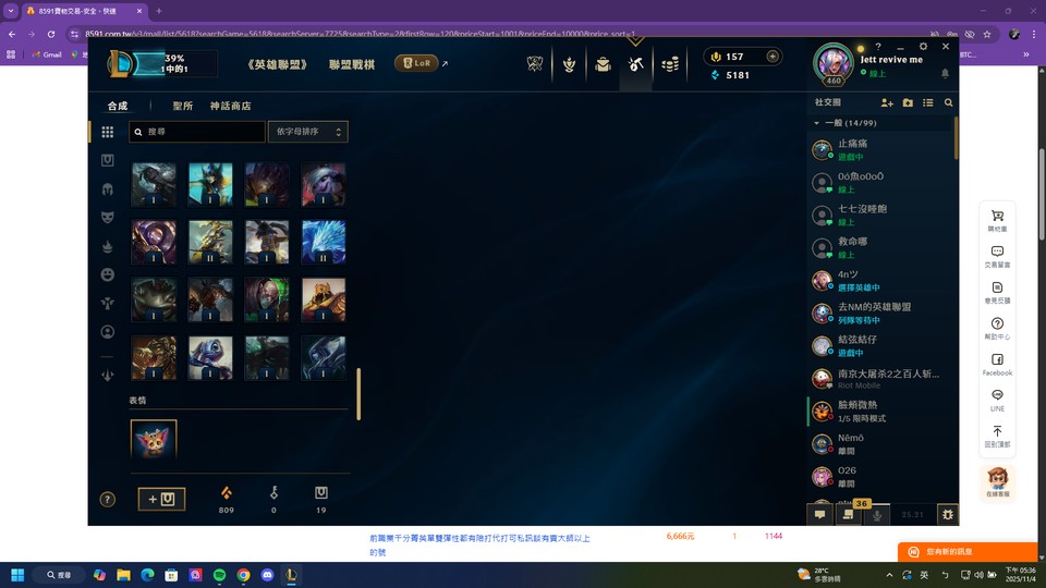 【460等、黃金、0英雄、444造型】一手玩到大 卡特全造型 聯盟多造型 可簽切結