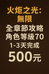 • 請於下單時提供角色名稱/伺服器/目前等級/進度狀況