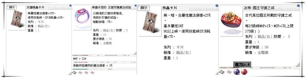 咒術士石(披肩)服飾套 咒術士石II(披肩)服飾套 國王守護之戒灰燼蝗蟲卡熊蟲卡