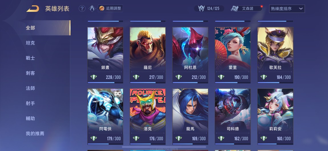 【Garena帳有綁定、先鋒傳說·天際、V9、124英、300造】V9快V10,造型只拍貴的,其他還有一堆710、1200的沒拍到,買到就算送你的