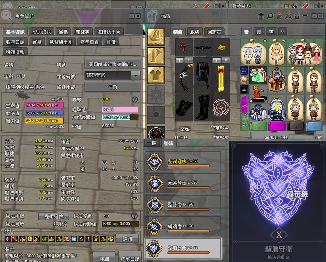 精靈武器全擴滿 (8隻全滿、第9隻85等可直接吃滿等)。