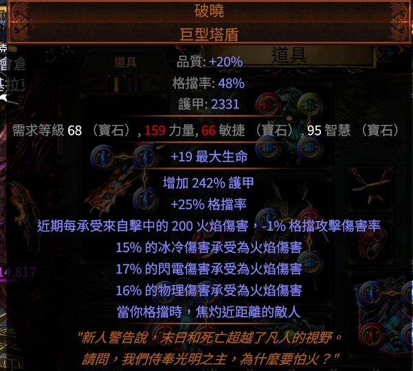 一套 全通T17 UBER元素使 咒死 2W6護甲 78%雙格擋 幸運法壓