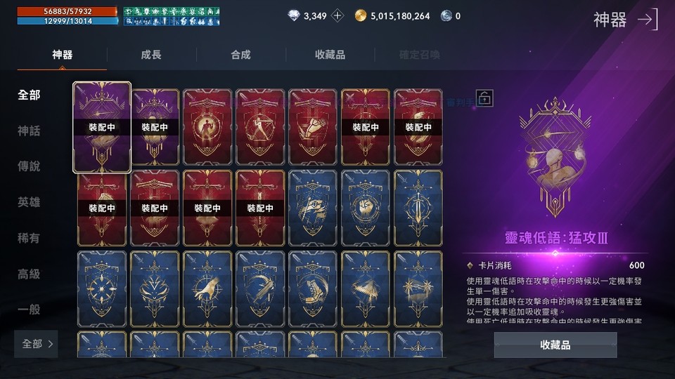 +5大秘儀長袍(神聖4)、+5帝國下褲、+5大秘儀頭箍、+5火花手、+5紅龍靴、+5墮落符印