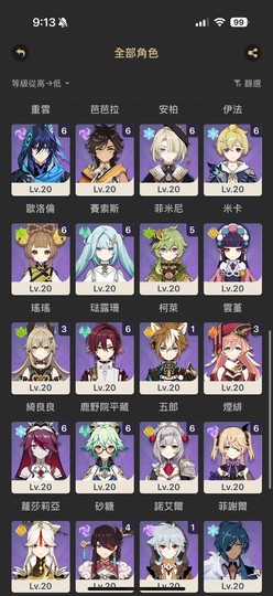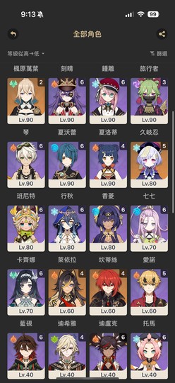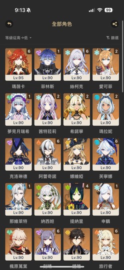 【女、60等、25金角、20金武】火神6+1 絲柯克6+2 僕人6+1 水神6+1 五星都畢業有專武,地圖全滿