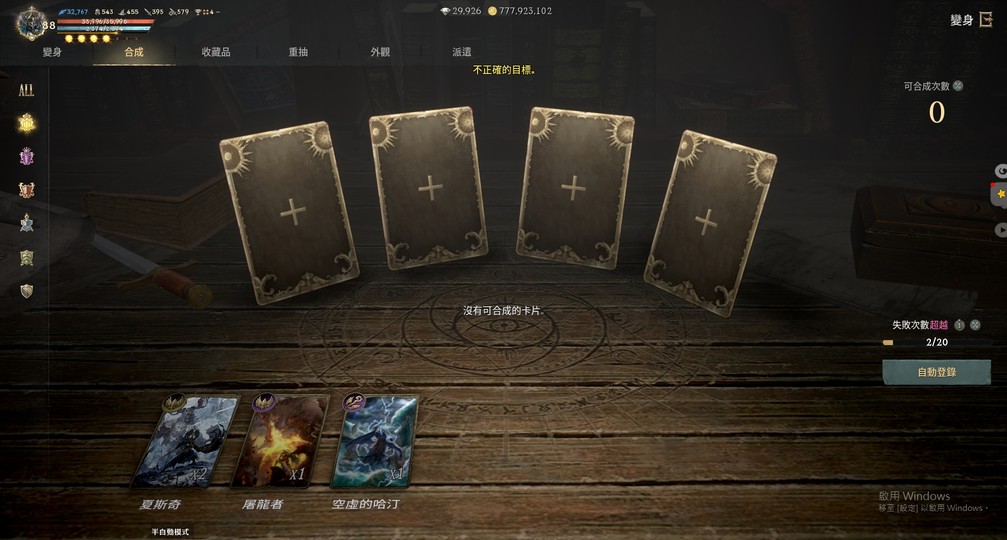 加護:地龍(藍)、火龍(藍)、風龍(藍)、水龍(藍)、歐林(紅3)、冰女(紅1)、螞蟻(紅1)、未知魔石(藍0)、席林(藍0)、不滅(白2)