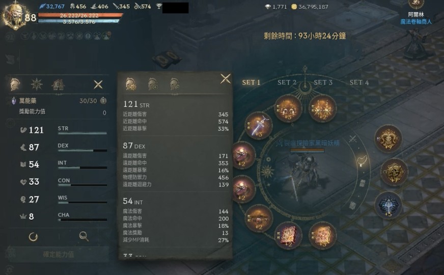 血盟樹全滿,勇猛2階、守護0階、智慧0階。