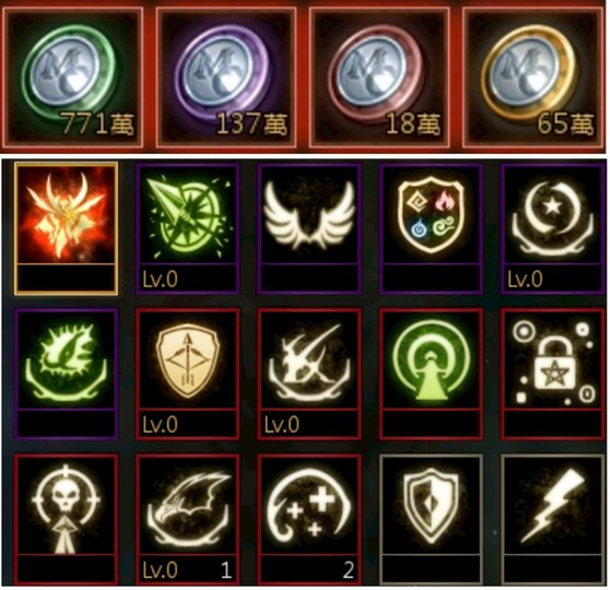 【技能】1金5紫7紅(重複3)名譽幣快800萬可隨意購買