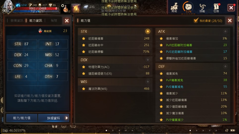 防禦裝 進傷248 防禦317 抗魔466 減免74+38+55