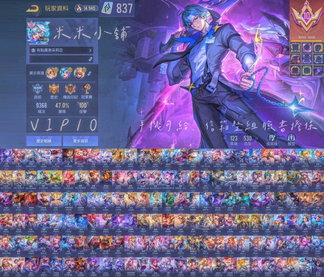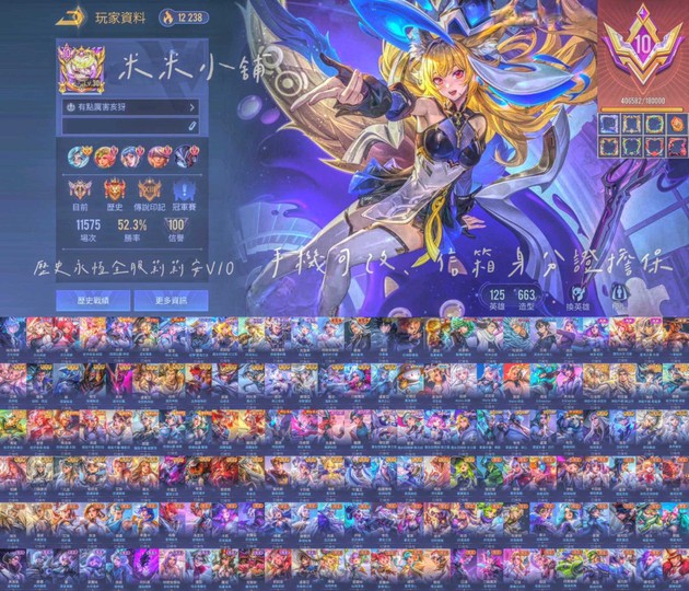 【Garena帳無綁無連、璀璨傳說、V10、124英、1019造】VIP10專賣場,想找v10帳號的客人都可以進來看看價格公道態度一定好 足球九霄