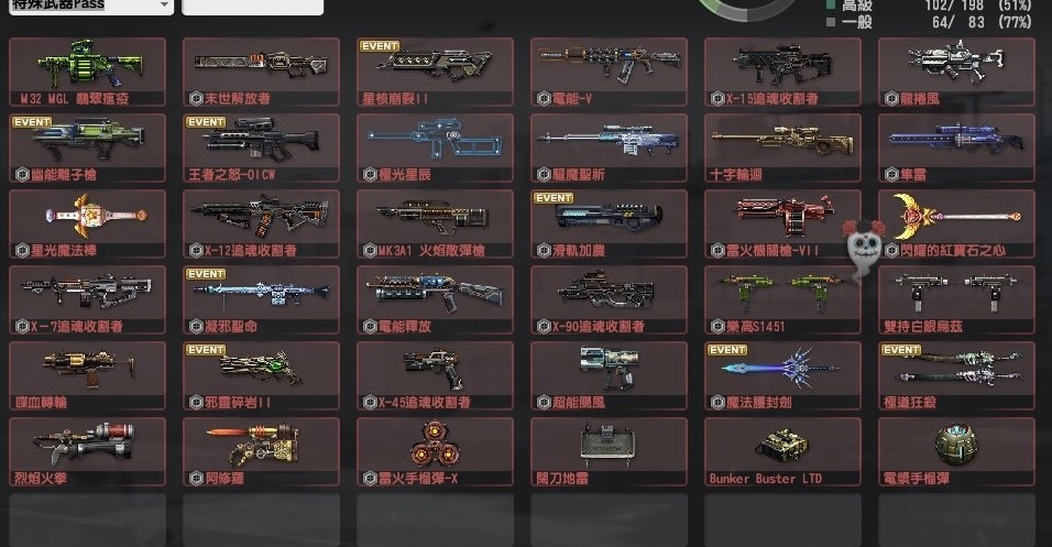 【5史詩武器、50王牌武器、34王牌角色】凜冬 噬魂 紫炫 曙光 天罰 烈焰 深淵 聖盾 雙狼 暗影火神 獨眼 颶風 浩劫