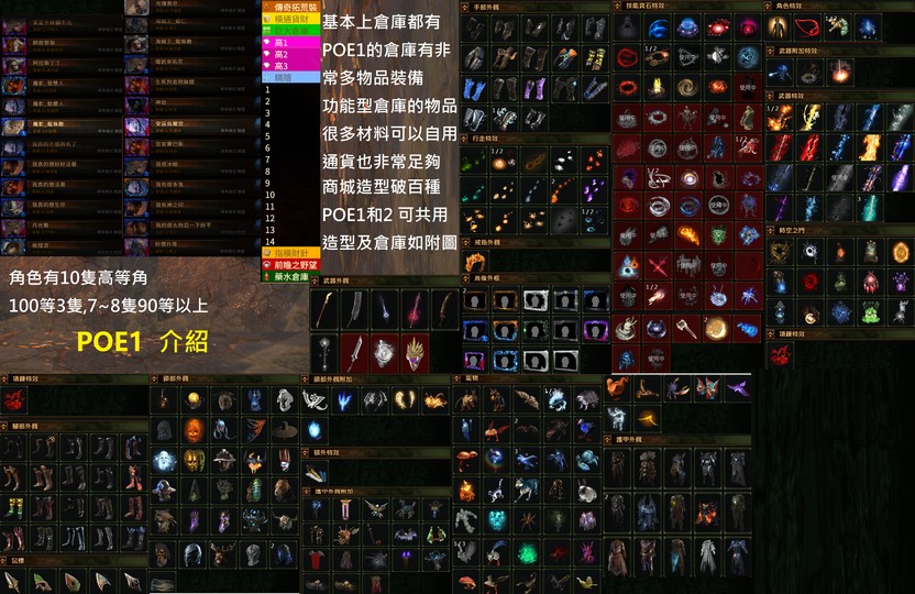 POE1內含多隻高等角色3隻100等,7-8隻90等以上\