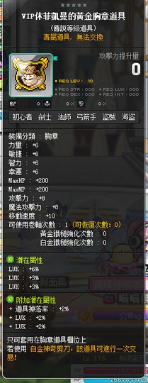 【VIP休菲凱曼的黃金胸章道具】雙傳16%智力跟16%幸運