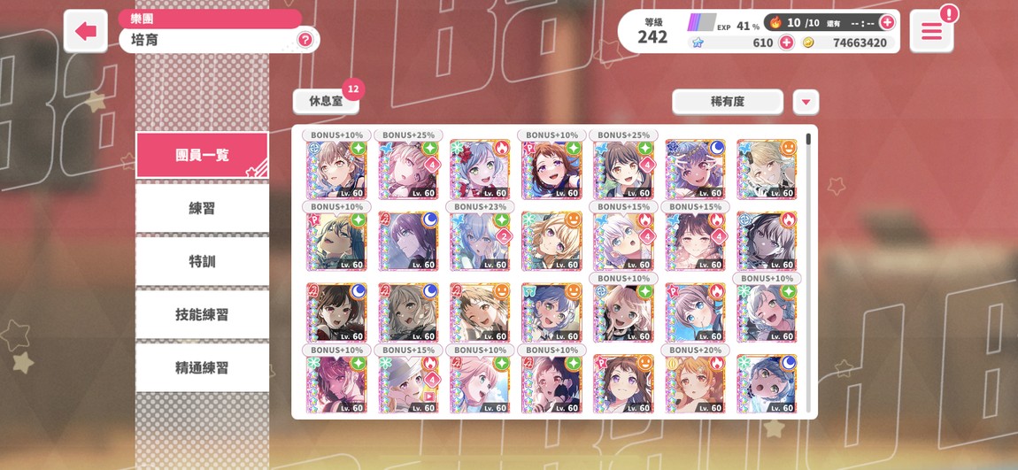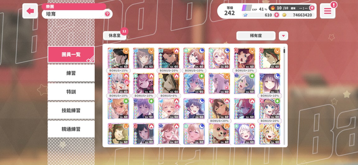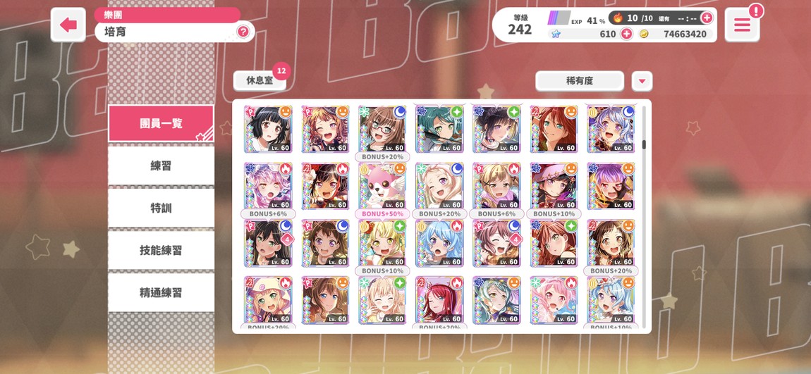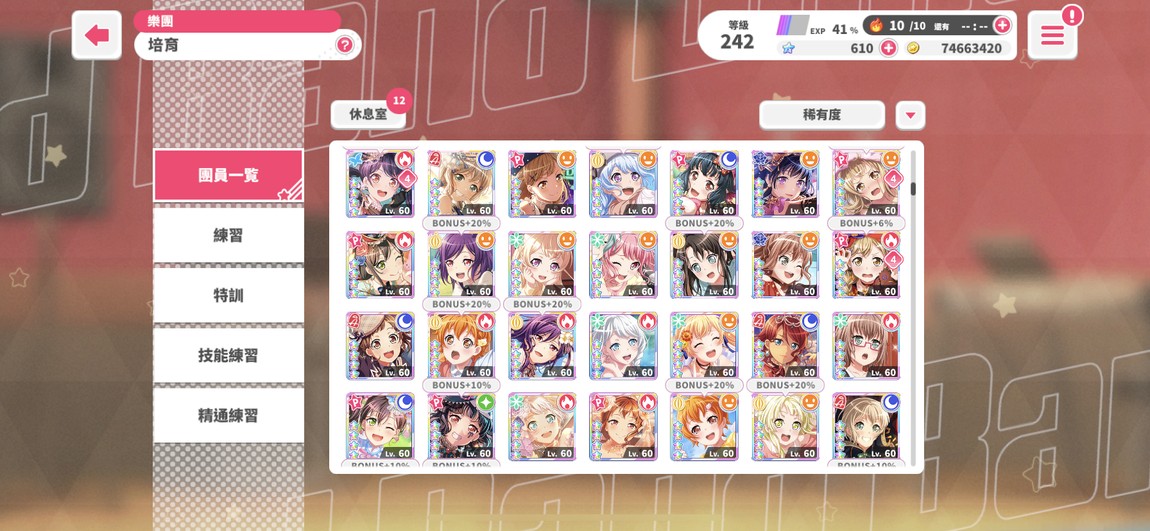 如題40隻5星、156隻4星,帳號內資源充足,除了mygo之外基本上都有同屬4星艦隊或以上、除了mygo 之外樂器都7或以上,有需要其他資訊請私訊提問,綁定是很久很久之前綁的移動怪獸,不知道可不可以改,如果改不了有切結書。歌曲全部都有。