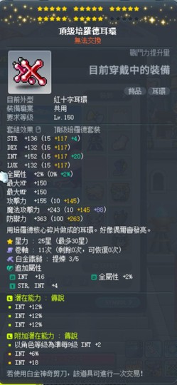 【頂級培羅德耳環】25星 頂% 36智 附加2.5排 +2 6% +18 智 全V