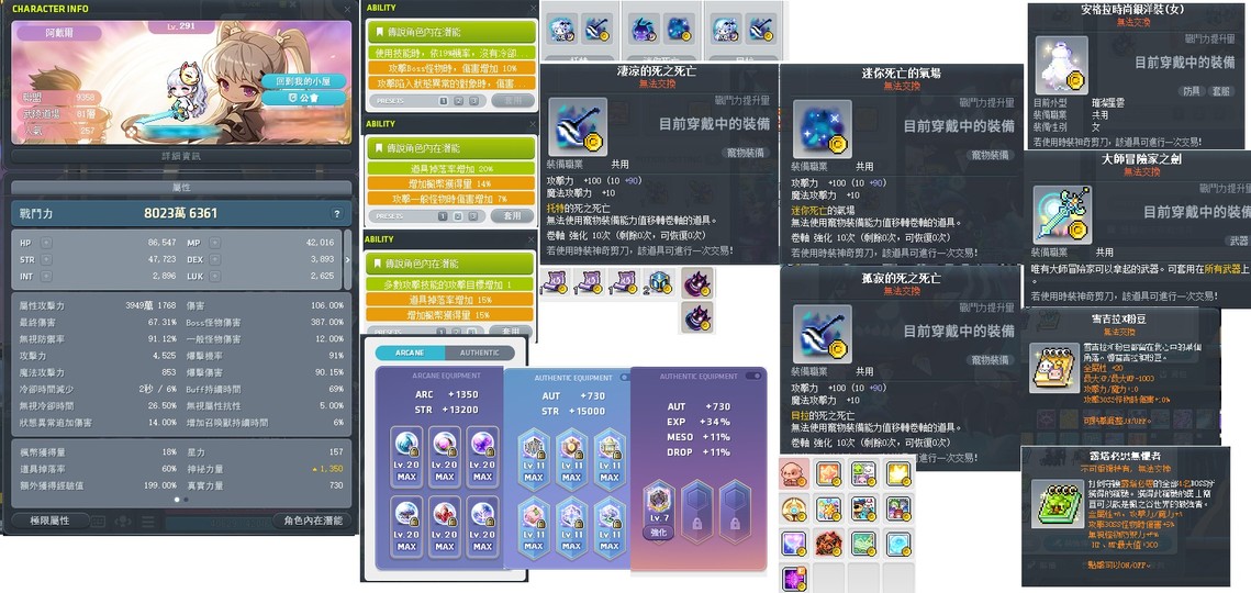 【291等、阿戴爾、9358戰地、730AUT】有3本 271夜使者 261影武者 6轉技能滿進度