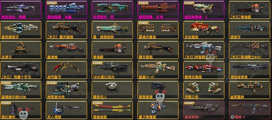 裡面有五把史詩武器、29王牌武器、12王牌角色