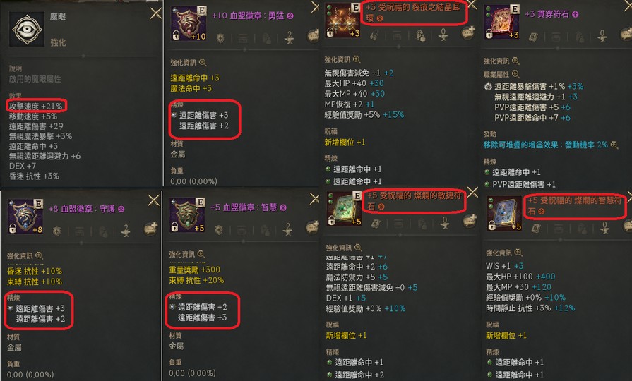 裝備紅圈圈起來的部分有7件 補紅裝可以再提升