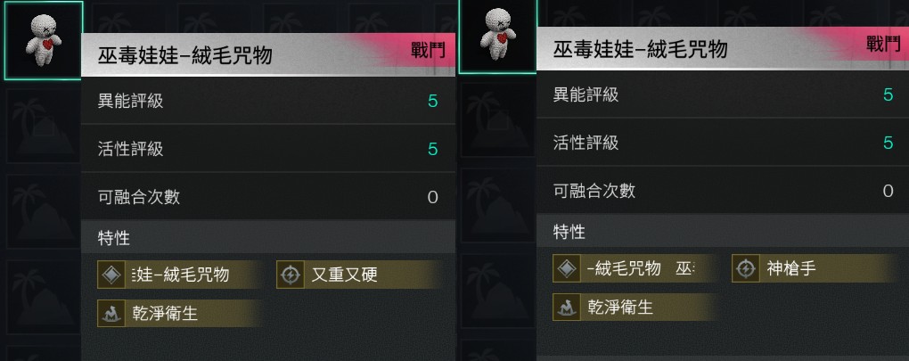 《 55巫毒娃娃-絨毛咒物 》: 念力小子、乾淨衛生 = 300T 【 融合次數 0 】