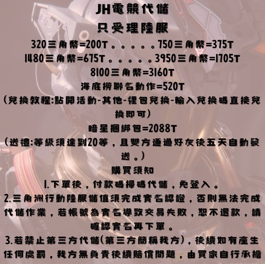 💥代儲請小窗:要多少三角幣,購買須知請務必詳閱,須完成實名認證。