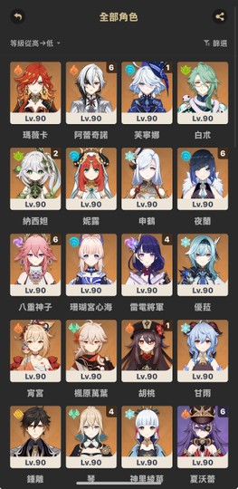 【女、58等、44金角、26金武】6+1八重 僕人 夜蘭 4+1雷神