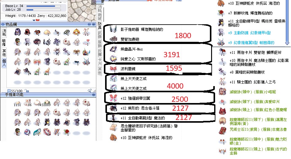 圖上所有裝備+身上4.2e+經驗書有的沒的 整套1.2w帶走 另外3張圖是腹膜素質