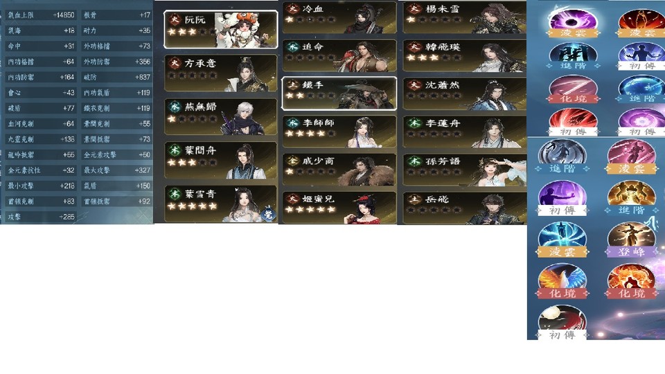 絕技 紅蓮凌雲/萬劍凌雲/劍破凌雲/九天登峰/法天化境/冰火化境
