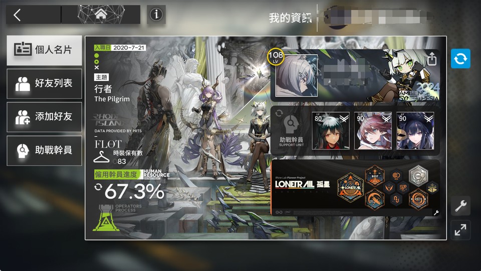 遊戲太多工作太忙,沒力氣玩了,想找人接收。課蠻多的所以雖然107等但練度算高。