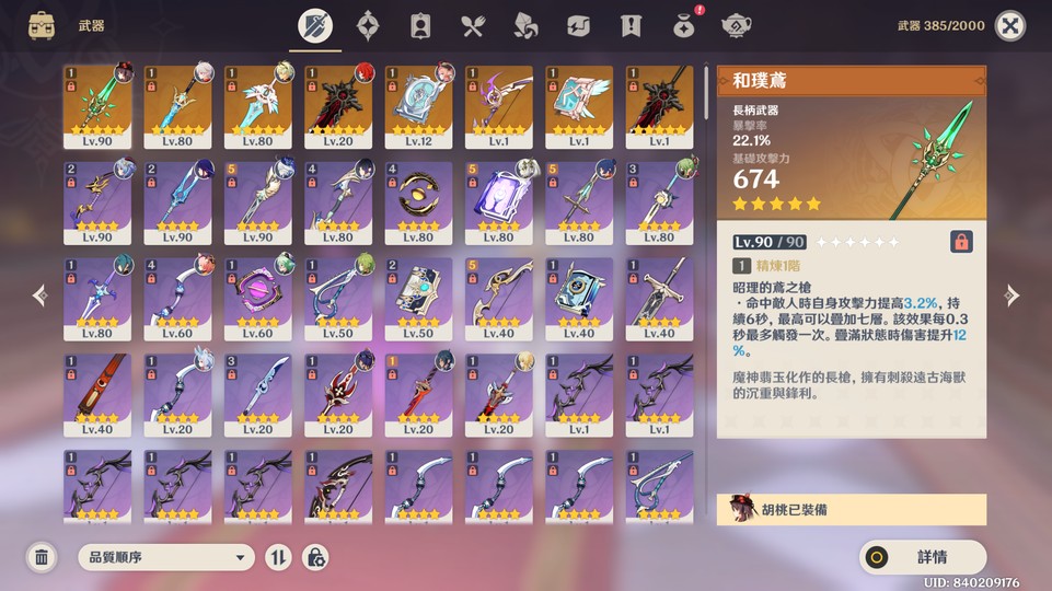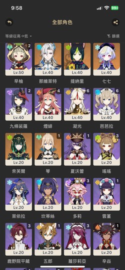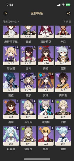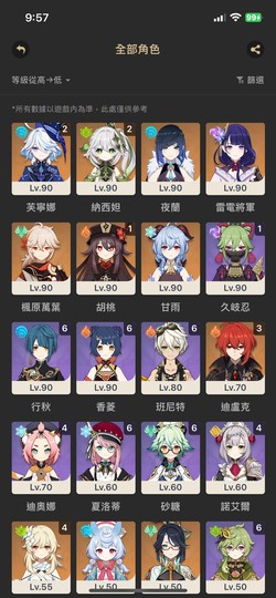 【女、57等、16金角、8金武】角色共27金、草、水、雷三神、萬葉連專