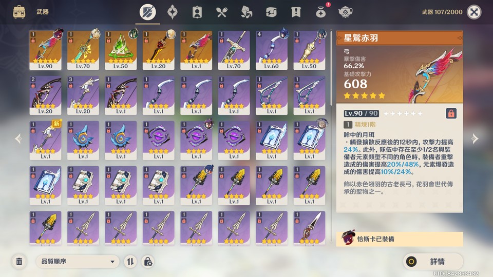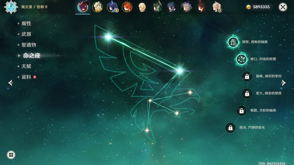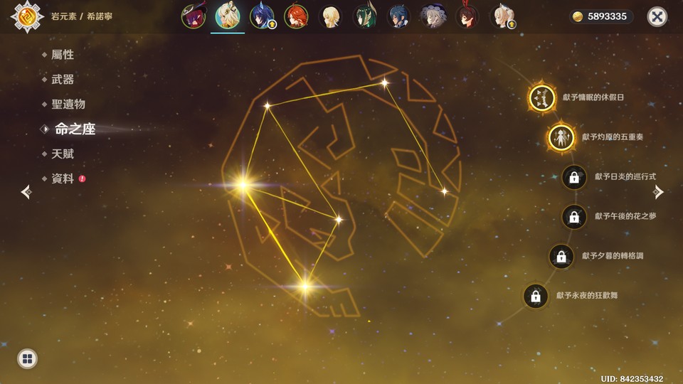 【女、56等、8金角、5金武】洽斯卡2+2、希諾寧2+1、火神0+0、奈芙爾0+1低進度