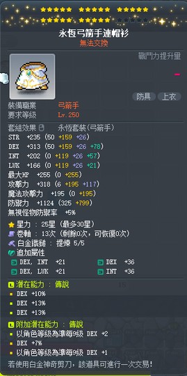 【永恆弓箭手連帽衫】雙傳25星36%敏永恆弓箭手上衣 附加2.5排 白5全b~