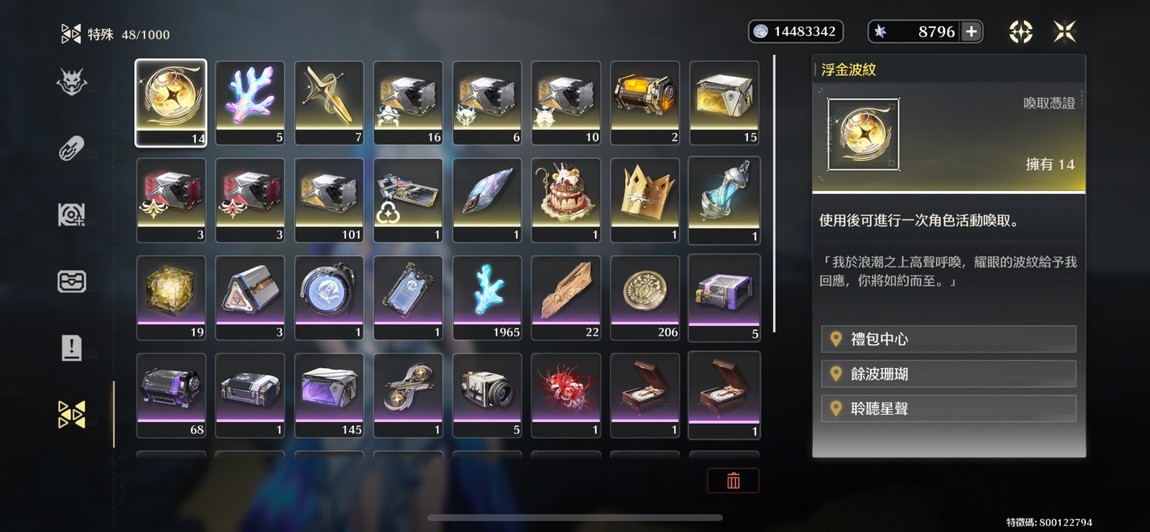 物品種類: 帳號