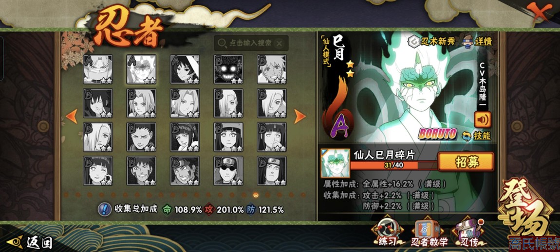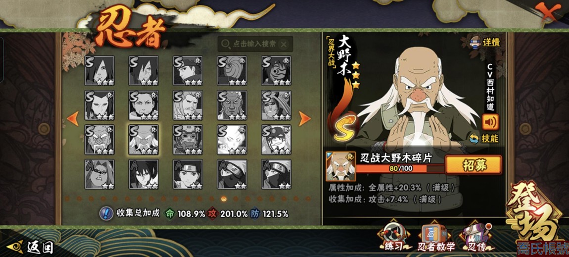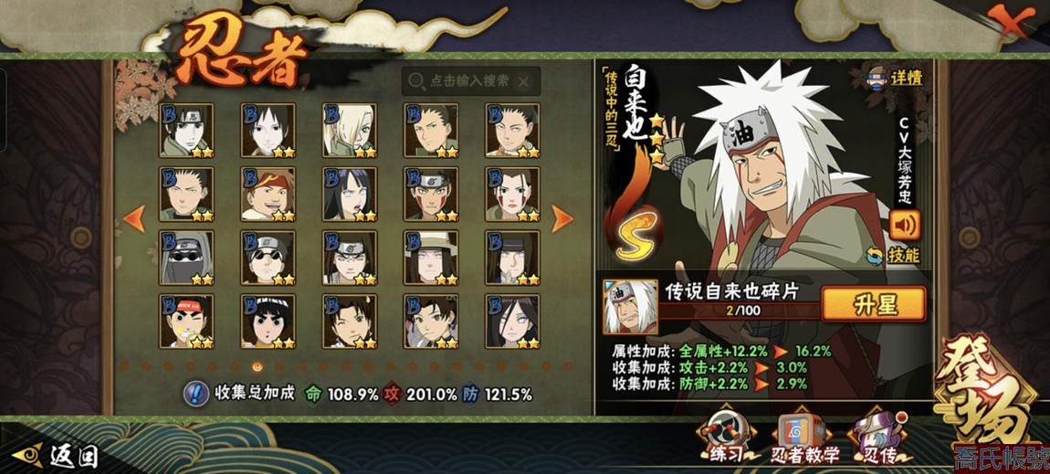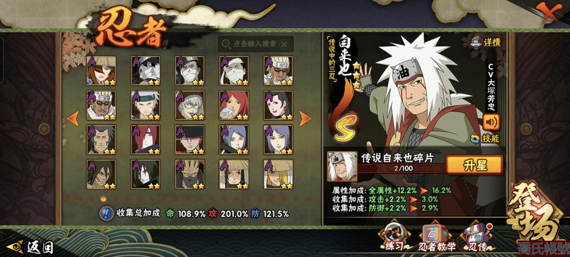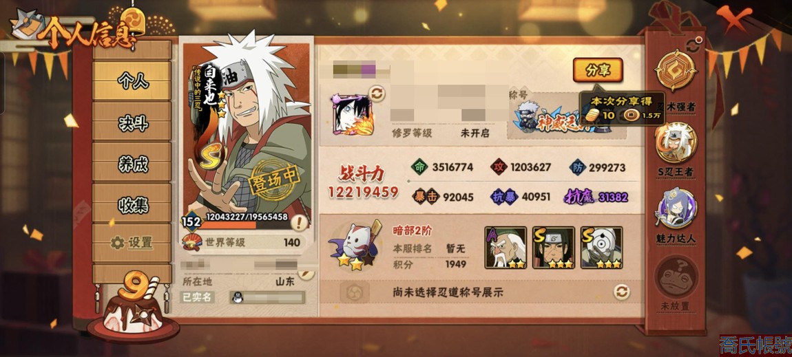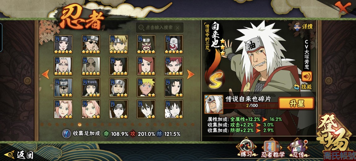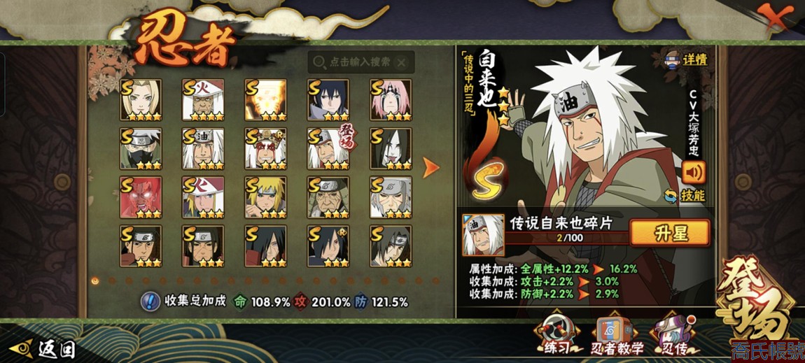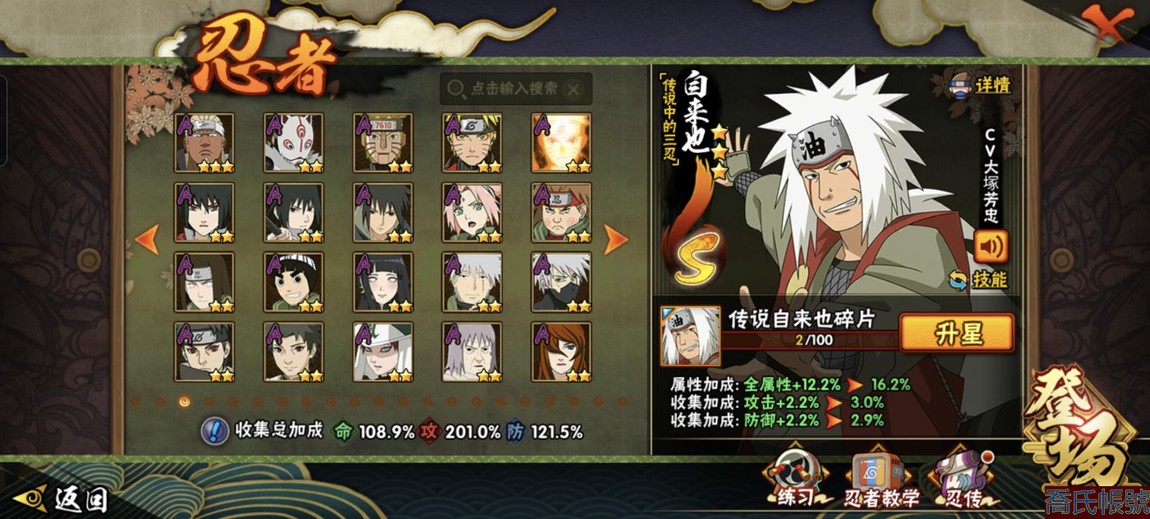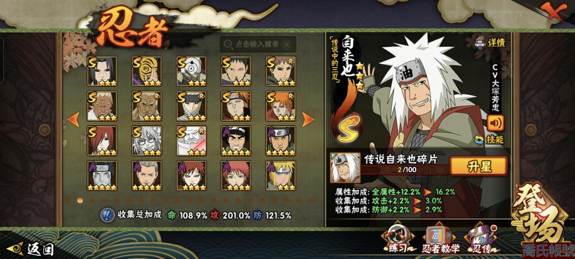 【11等】戰鬥力:1221萬;VIPV13級;S忍7個;A忍1個;通靈獸1個;S忍:五