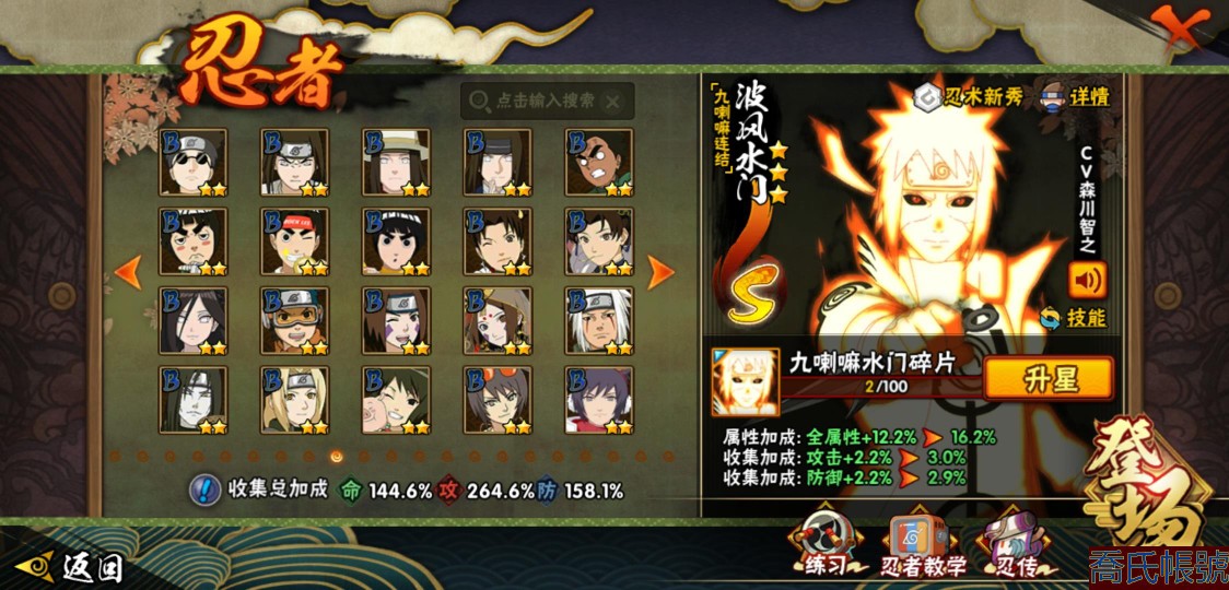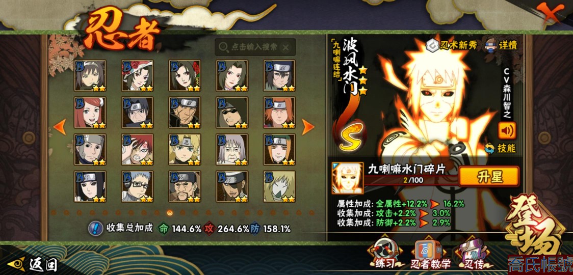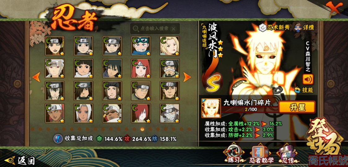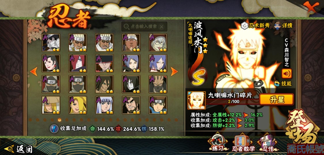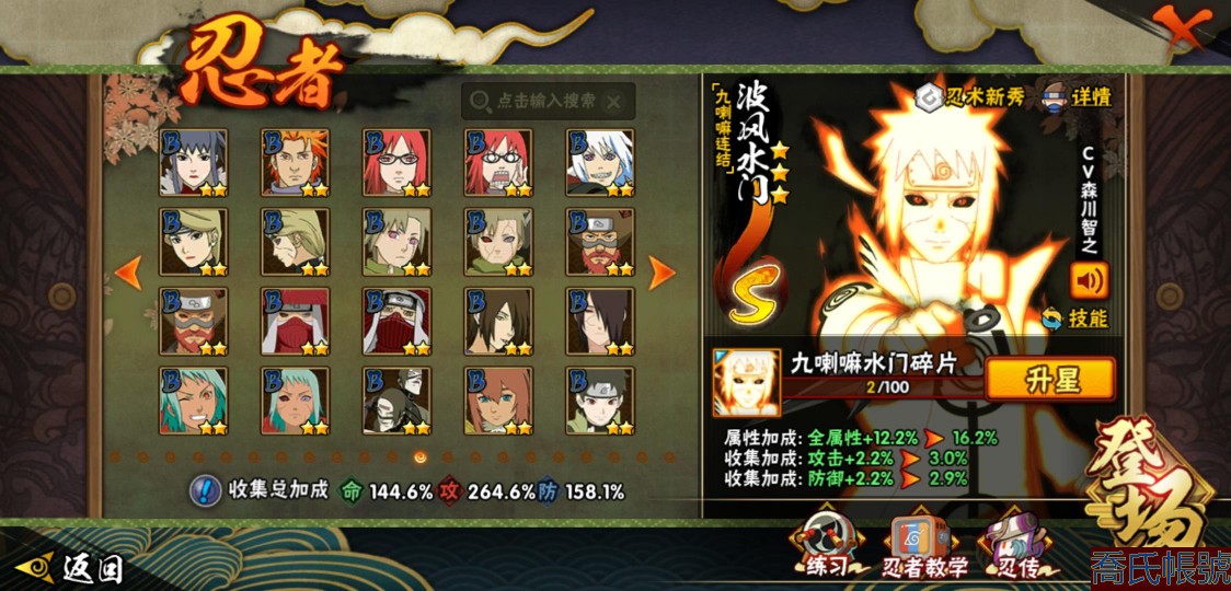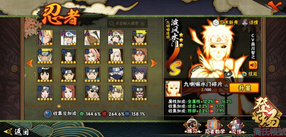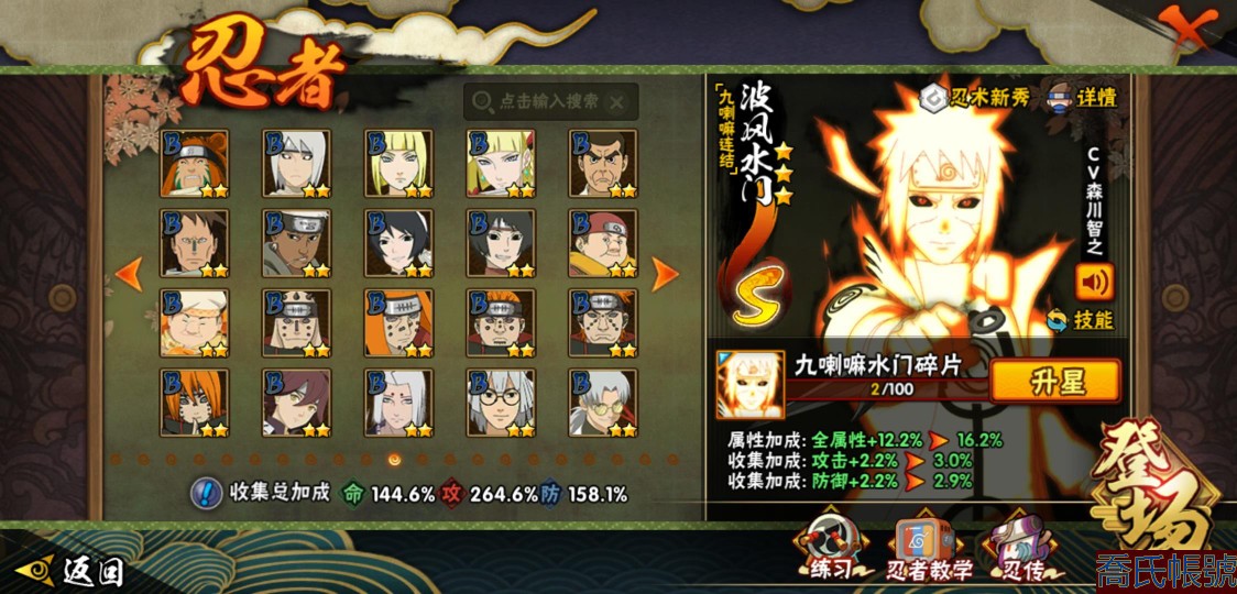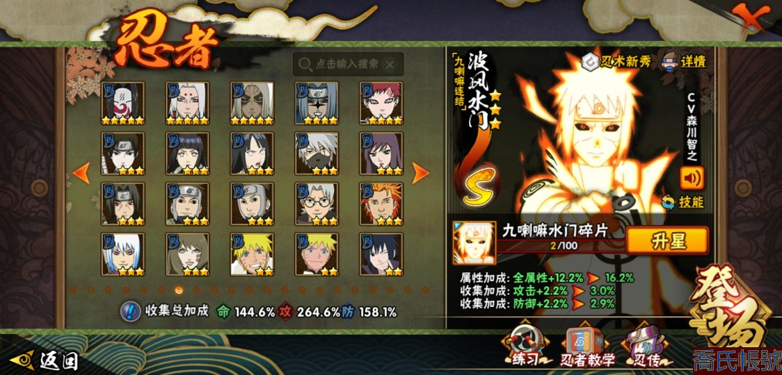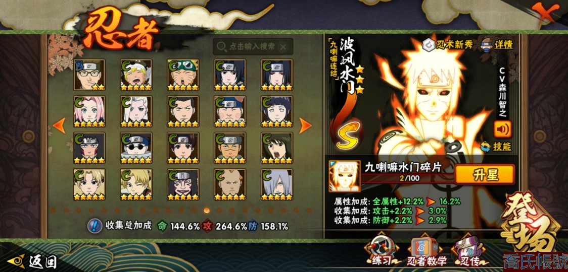 【OBHJPNG946442】戰鬥力:2432W+;段位:中忍2階;本服排名:132;戰區排名:未上榜;VIP13級;S忍51個;A忍52個;通靈獸24個;S忍:大蛇丸(5星),綱手(4星),猿飛日斬(4星),須佐能乎宇智波鼬(4星),天道佩恩(4星),暴怒第六尾漩渦鳴人,九喇嘛連結漩渦鳴人,永恆萬花筒宇智波佐助,忍界大戰春野櫻,須佐能乎旗木卡卡西,自來也,仙人模式自來也,舞之豪傑自來也,傳說中的三忍自來也,百豪綱手,死門邁特凱,波風水門,九喇嘛連結波風水門,穢土轉生波風水門,穢土轉生猿飛日斬,千手扉間,穢土轉生千手扉間,千手柱間,木葉創立千手柱間,穢土轉生千手柱間,穢土轉生宇智波斑,宇智波斑,木葉創立宇智波斑,穢土轉生解宇智波斑,穢土轉生宇智波鼬,須佐能乎宇智波止水,神秘面具男,白面具宇智波斑,忍界大戰宇智波帶土,紅夜之刃神秘面具男,四代目風影羅砂,初代目風影烈鬥,二代目水影鬼燈幻月,四代目雷影艾,忍界大戰艾,三代目雷影艾,三代目土影大野木,二代目土影無,穢土轉生半藏,忍界大戰大野木,超佩恩天道,穢土轉生長門,仙人模式藥師兜,最終章大筒木舍人,大筒木桃式,大筒木金式;A忍:猿飛阿斯瑪(5星),蠍(5星),幹柿鬼鮫(5星),疾風傳我愛羅(4星),飛段(4星),宇智波鼬(3星),死司憑血飛段(3星),仙人模式漩渦鳴人,九尾查克拉漩渦鳴人,萬花筒寫輪眼宇智波佐助,須佐能乎宇智波佐助,宇智波泉奈,百豪春野櫻,忍界大戰秋道丁次,忍界大戰日向寧次,忍界大戰李洛克,幻之真容旗木卡卡西,萬花筒寫輪眼旗木卡卡西,穢土轉生猿飛阿斯瑪,七夕限定猿飛阿斯瑪,地陸,宇智波止水,火影繼承人猿飛日斬,青年波風水門,忍界大戰我愛羅,近松十人衛千代,五代目水影照美冥,桃地再不斬,穢土轉生桃地再不斬,忍界大戰奇拉比,奇拉比,青年艾,半蛇斗篷藥師兜,不緣,青年長門,漂泊浪客佩恩六道,小南,漂泊浪客小南,角都,地怨虞角都,穢土轉生角都,曉大蛇丸,緋流琥蠍,迪達拉,穢土轉生迪達拉,加藤斷,羈絆神農,猿飛木葉丸,桃式顯現漩渦博人,六代目水影長十郎,五代目雷影達魯伊,四代目土影黑土;通靈獸:忍犬,藍蛇,蛤蟆吉,忍龜,鐮鼬,猿魔,山椒魚,蜃,蛤蟆仙人,鮫鯊,蛤蟆健,烏鴉,蛞蝓,砂之守鶴,蛤蟆龍,怒鬼,怒鬼無臂,蛤蟆廣,夢貘,怒鬼爪,鷹,蜘蛛,辛牙;時裝:狂野鮫鯊幹柿鬼鮫,百戰佩恩天道,百戰宇智波鼬須佐能乎,蜀面豪傑舞之豪傑自來也,百戰大蛇丸,百戰波風水門,太極靈韻日向花火武當宗師,智勇記者宇智波佐良娜,驚雷掠影達魯伊五代目雷影,傳說的光芒波風水門,飛瀑流泉長十郎六代目水影,熊貓少女天天峨眉宗師,剎那的藝術迪達拉,驕陽翠羽照美冥夏日泳裝,菁英忍者旗木卡卡西少年,風之守護我愛羅忍界大戰,可愛睡衣漩渦鳴人,土之固守大野木三代目土影,編織虛實宇智波鼬,緋櫻綻放春野櫻百豪,龍的傳人李洛克截拳宗師,睿勇新星千手扉間少年,命定之戰宇智波佐助疾風傳,純白之心白,血霧怪人幹柿鬼鮫,烈土霓裳黑土四代目土影;【217】鴻蒙217區-51s-2435w-v13
