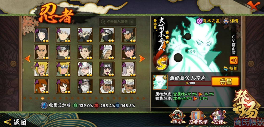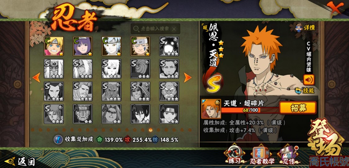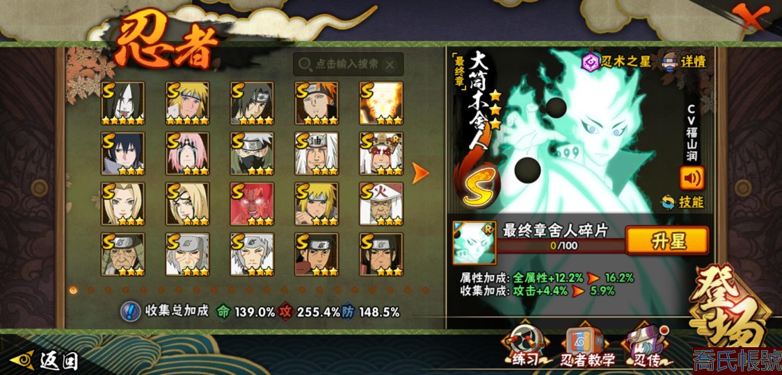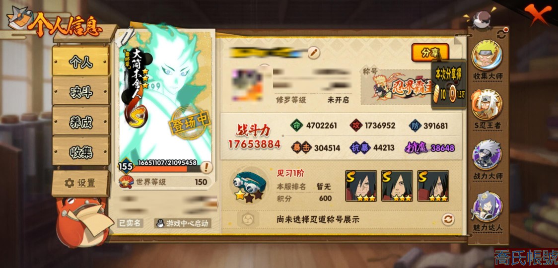 【OBHLLXQ511542】戰鬥力:1765W+;段位:見習1階;本服排名:292;戰區排名:未上榜;VIP13級;S忍42個;A忍66個;通靈獸26個;S忍:大蛇丸(5星),波風水門(5星),須佐能乎宇智波鼬(4星),天道佩恩(4星),九喇嘛連結漩渦鳴人,永恆萬花筒宇智波佐助,忍界大戰春野櫻,須佐能乎旗木卡卡西,自來也,舞之豪傑自來也,綱手,百豪綱手,死門邁特凱,穢土轉生波風水門,猿飛日斬,穢土轉生猿飛日斬,穢土轉生千手扉間,千手扉間,千手柱間,穢土轉生千手柱間,木葉創立千手柱間,宇智波斑,穢土轉生宇智波斑,木葉創立宇智波斑,穢土轉生解宇智波斑,穢土轉生宇智波鼬,須佐能乎宇智波止水,神秘面具男,白面具宇智波斑,忍界大戰宇智波帶土,紅夜之刃神秘面具男,四代目風影羅砂,四代目雷影艾,忍界大戰艾,忍界大戰大野木,二代目土影無,穢土轉生半藏,穢土轉生長門,仙人模式藥師兜,最終章大筒木舍人,大筒木桃式,大筒木金式;A忍:猿飛阿斯瑪(5星),蠍(5星),幹柿鬼鮫(5星),飛段(5星),疾風傳我愛羅(4星),萬花筒寫輪眼宇智波佐助(3星),穢土轉生迪達拉(3星),死司憑血飛段(3星),仙人模式漩渦鳴人,忍者之路神秘面具男,九尾查克拉漩渦鳴人,須佐能乎宇智波佐助,宇智波泉奈,百豪春野櫻,忍界大戰秋道丁次,忍界大戰日向寧次,忍界大戰李洛克,最終章日向雛田,幻之真容旗木卡卡西,萬花筒寫輪眼旗木卡卡西,忍界大戰旗木卡卡西,穢土轉生猿飛阿斯瑪,地陸,宇智波止水,新春限定宇智波止水,志村團藏,火影繼承人猿飛日斬,新春限定波風水門,青年波風水門,忍界大戰我愛羅,忍界大戰勘九郎,近松十人衛千代,夏日泳裝照美冥,五代目水影照美冥,桃地再不斬,奇拉比,忍界大戰奇拉比,青年艾,漂泊武士千手扉間,半蛇斗篷藥師兜,不風,不緣,不動,青年長門,漂泊浪客佩恩六道,小南,夏日泳裝小南,新春限定小南,漂泊浪客小南,曉創生角都,角都,地怨虞角都,穢土轉生角都,曉大蛇丸,緋流琥蠍,宇智波鼬,新春限定宇智波鼬,迪達拉,漂泊浪客宇智波帶土,加藤斷,俠隱江湖大野木,猿飛木葉丸,桃式顯現漩渦博人,六代目水影長十郎,五代目雷影達魯伊,四代目土影黑土;通靈獸:忍犬,藍蛇,蛤蟆吉,忍龜,鐮鼬,猿魔,山椒魚,蜃,蛤蟆仙人,鮫鯊,蛤蟆健,烏鴉,蛞蝓,蛤蟆龍,熊貓,二尾又旅,,蛤蟆廣,砂之守鶴,夢貘,怒鬼無臂,怒鬼爪,怒鬼,辛牙,鷹;時裝:百戰波風水門,百戰宇智波鼬須佐能乎,蜀面豪傑舞之豪傑自來也,百戰佩恩天道,狂野鮫鯊幹柿鬼鮫,百戰大蛇丸,太極靈韻日向花火武當宗師,晨昏神使小南漂泊浪客,龍吟浪客千手扉間漂泊武士,烈土霓裳黑土四代目土影,剎那的藝術迪達拉,龍的傳人李洛克截拳宗師,隱藏內心的面具旗木卡卡西暗部,可愛睡衣漩渦鳴人,血霧怪人幹柿鬼鮫,驕陽翠羽照美冥夏日泳裝,熊貓少女天天峨眉宗師,風之守護我愛羅忍界大戰,驚雷掠影達魯伊五代目雷影,雷電之力艾四代目雷影,傳說的光芒波風水門;【214】39338金幣 可轉生 1720點券