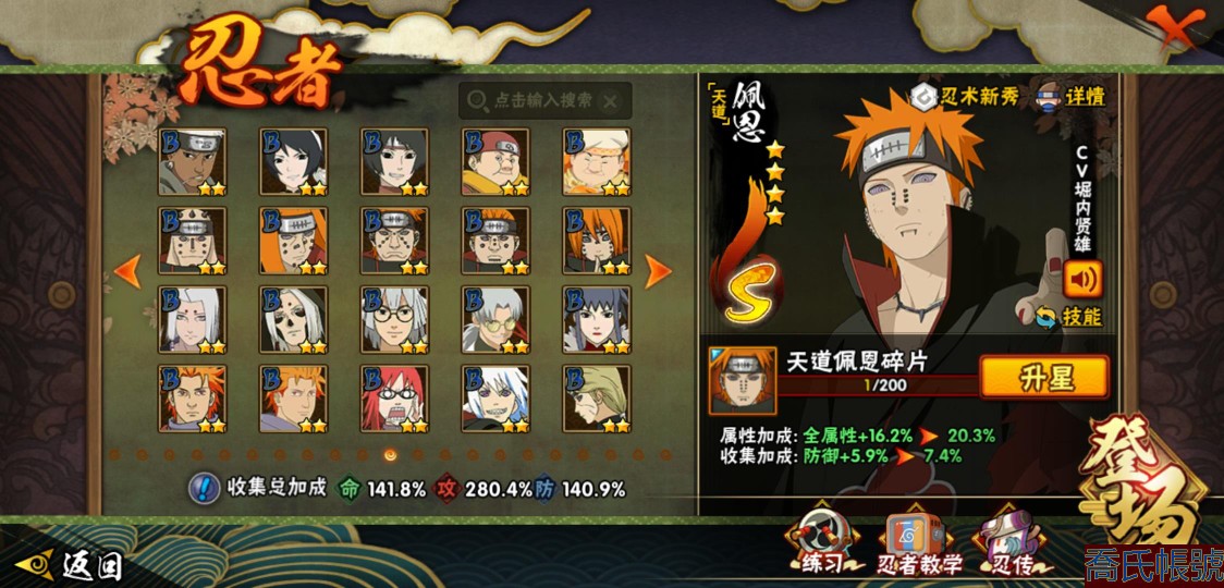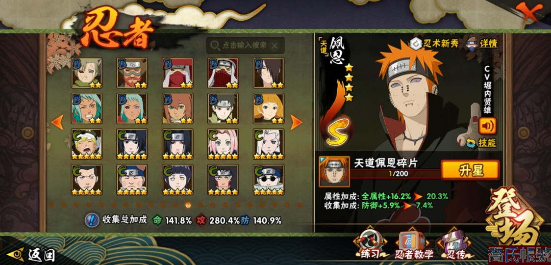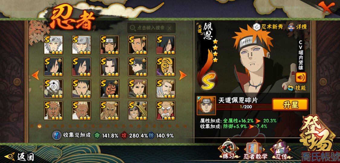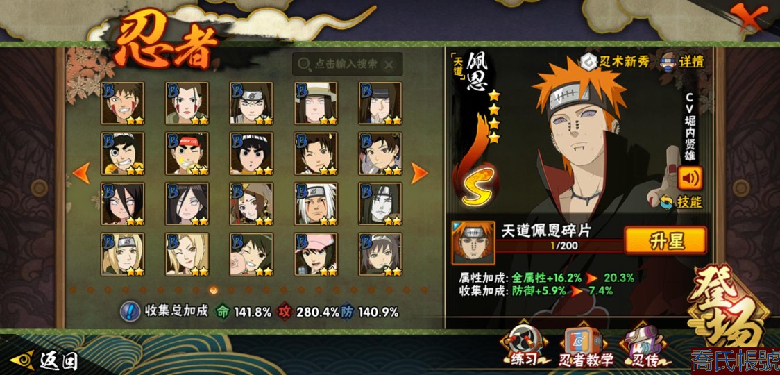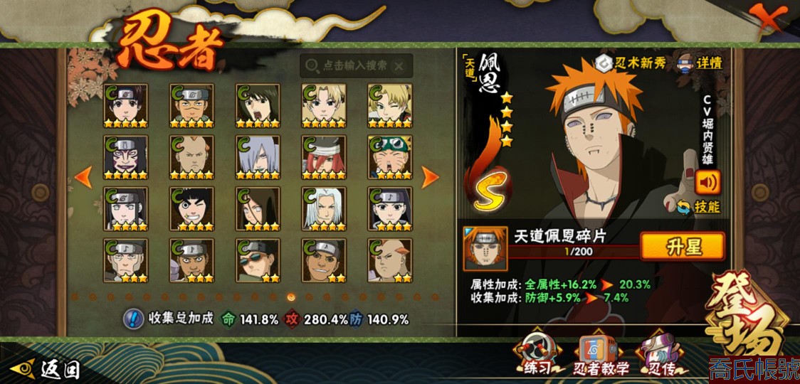 【OBHLLXQ714542】戰鬥力:2737W+;段位:中忍2階;本服排名:5;戰區排名:59;VIP14級;S忍48個;A忍57個;通靈獸32個;S忍:仙人模式自來也(5星),綱手(5星),猿飛日斬(5星),大蛇丸(4星),須佐能乎宇智波鼬(4星),初代目風影烈鬥(4星),天道佩恩(4星),暴怒第六尾漩渦鳴人,九喇嘛連結漩渦鳴人,永恆萬花筒宇智波佐助,忍界大戰春野櫻,須佐能乎旗木卡卡西,自來也,舞之豪傑自來也,傳說中的三忍自來也,百豪綱手,死門邁特凱,波風水門,穢土轉生波風水門,穢土轉生猿飛日斬,千手扉間,穢土轉生千手扉間,穢土轉生千手柱間,木葉創立千手柱間,穢土轉生宇智波斑,木葉創立宇智波斑,穢土轉生解宇智波斑,穢土轉生宇智波鼬,須佐能乎宇智波止水,神秘面具男,白面具宇智波斑,忍界大戰宇智波帶土,紅夜之刃神秘面具男,四代目風影羅砂,二代目水影鬼燈幻月,四代目雷影艾,忍界大戰艾,三代目雷影艾,穢土轉生金角銀角,三代目土影大野木,二代目土影無,穢土轉生半藏,忍界大戰大野木,超佩恩天道,仙人模式藥師兜,最終章大筒木舍人,大筒木桃式,大筒木金式;A忍:猿飛阿斯瑪(5星),疾風傳我愛羅(5星),蠍(5星),幹柿鬼鮫(5星),死司憑血飛段(5星),飛段(4星),旗木卡卡西(3星),宇智波鼬(3星),迪達拉(3星),猿飛木葉丸(3星),仙人模式漩渦鳴人,忍者之路神秘面具男,九尾查克拉漩渦鳴人,萬花筒寫輪眼宇智波佐助,須佐能乎宇智波佐助,宇智波泉奈,忍界大戰秋道丁次,忍界大戰日向寧次,忍界大戰李洛克,幻之真容旗木卡卡西,萬花筒寫輪眼旗木卡卡西,忍界大戰旗木卡卡西,宇智波止水,新春限定宇智波止水,新春限定波風水門,青年波風水門,忍界大戰我愛羅,新春限定我愛羅,近松十人衛千代,五代目水影照美冥,俠隱江湖照美冥,漂泊武士桃地再不斬,穢土轉生桃地再不斬,奇拉比,忍界大戰奇拉比,青年艾,忍界大戰土臺,漂泊武士千手扉間,半蛇斗篷藥師兜,不緣,青年長門,漂泊浪客佩恩六道,小南,漂泊浪客小南,地怨虞角都,穢土轉生角都,曉大蛇丸,緋流琥蠍,新春限定宇智波鼬,穢土轉生迪達拉,惡靈之影飛段,俠隱江湖大野木,羈絆神農,五代目雷影達魯伊,桃式顯現漩渦博人,六代目水影長十郎,四代目土影黑土;通靈獸:忍犬,藍蛇,蛤蟆吉,忍龜,鐮鼬,猿魔,山椒魚,蜃,蛞蝓,蛤蟆仙人,鮫鯊,蛤蟆健,烏鴉,熊貓,二尾又旅,蛤蟆龍,怒鬼,蛤蟆廣,,砂之守鶴,巨型三足鳥,夢貘,萬蛇,怒鬼無臂,鷹,蜘蛛,怒鬼爪,辛牙,鵺,變色龍,祥瑞金烏;時裝:百戰波風水門,百戰宇智波鼬須佐能乎,桀驁之刃猿飛阿斯瑪,鋼鐵之軀邁特凱,蜀面豪傑舞之豪傑自來也,百戰佩恩天道,狂野鮫鯊幹柿鬼鮫,百戰大蛇丸,太極靈韻日向花火武當宗師,龍吟浪客千手扉間漂泊武士,土之固守大野木三代目土影,飛瀑流泉長十郎六代目水影,烈土霓裳黑土四代目土影,火之意志綱手百豪,可愛睡衣漩渦鳴人,血霧怪人幹柿鬼鮫,風之守護我愛羅忍界大戰,傳說的光芒波風水門,剎那的藝術迪達拉,龍的傳人李洛克截拳宗師,命定之戰宇智波佐助疾風傳,菁英忍者旗木卡卡西少年,隱藏內心的面具旗木卡卡西暗部,驚雷掠影達魯伊五代目雷影,編織虛實宇智波鼬,紅月映雪宇智波鼬新春限定,智勇記者宇智波佐良娜,烈火華服宇智波止水新春限定,純白之心白,緋櫻綻放春野櫻百豪,睿勇新星千手扉間少年,熊貓少女天天峨眉宗師;【1507】48s 58a 戰區個人59組織8