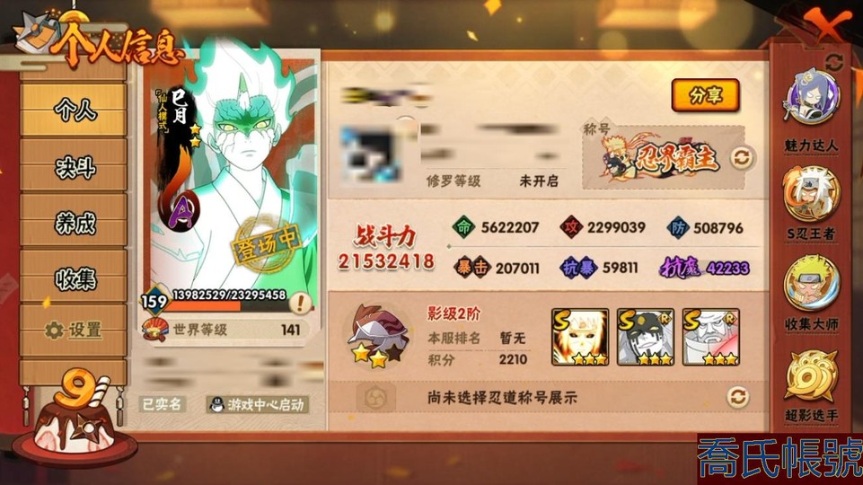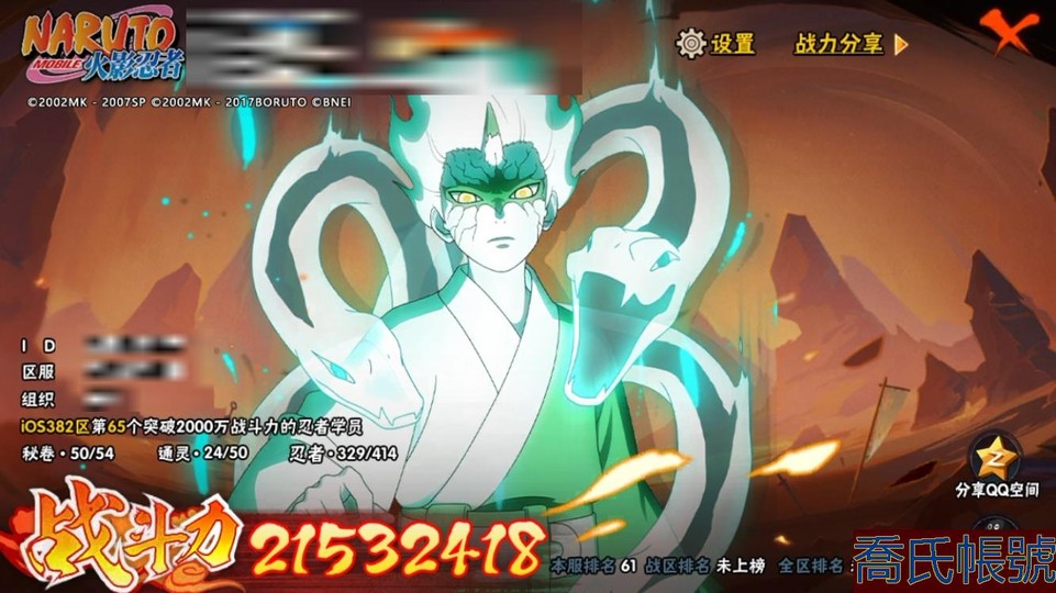 【OBHLLXQ547142】戰鬥力:2153W+;段位:影級2階;本服排名:61;戰區排名:未上榜;VIP13級;S忍45個;A忍62個;通靈獸24個;S忍:千手柱間,須佐能乎旗木卡卡西,初代目風影烈鬥,忍界大戰大野木,須佐能乎宇智波止水,白面具宇智波斑,穢土轉生波風水門,穢土轉生宇智波斑,猿飛日斬,千手扉間,穢土轉生千手柱間,穢土轉生三代目風影,忍界大戰艾,二代目土影無,仙人模式自來也,舞之豪傑自來也,傳說中的三忍自來也,須佐能乎宇智波鼬,穢土轉生解宇智波斑,最終章大筒木舍人,永恆萬花筒宇智波佐助,超佩恩天道,大筒木桃式,綱手,木葉創立千手柱間,忍界大戰春野櫻,百豪綱手,穢土轉生宇智波鼬,神秘面具男,木葉創立宇智波斑,忍界大戰宇智波帶土,死門邁特凱,紅夜之刃神秘面具男,自來也,穢土轉生猿飛日斬,大蛇丸,波風水門,九喇嘛連結漩渦鳴人,暴怒第六尾漩渦鳴人,大筒木金式,九喇嘛連結波風水門,穢土轉生千手扉間,宇智波斑,天道佩恩,仙人模式藥師兜;A忍:猿飛阿斯瑪,蠍,幹柿鬼鮫,飛段,疾風傳我愛羅,仙人模式漩渦鳴人,初始形態機械鳴人,九尾查克拉漩渦鳴人,萬花筒寫輪眼宇智波佐助,須佐能乎宇智波佐助,俠隱江湖宇智波佐助,宇智波泉奈,百豪春野櫻,忍界大戰秋道丁次,忍界大戰日向寧次,忍界大戰李洛克,最終章日向雛田,幻之真容旗木卡卡西,萬花筒寫輪眼旗木卡卡西,宇智波止水,新春限定宇智波止水,志村團藏,青年波風水門,忍界大戰我愛羅,新春限定我愛羅,近松十人衛千代,五代目水影照美冥,桃地再不斬,穢土轉生桃地再不斬,漂泊武士桃地再不斬,奇拉比,忍界大戰奇拉比,青年艾,忍界大戰土臺,半蛇斗篷藥師兜,俠隱江湖藥師兜,不風,不緣,不動,青年長門,漂泊浪客佩恩六道,小南,漂泊浪客小南,絕,穢土轉生角都,曉大蛇丸,緋流琥蠍,宇智波鼬,迪達拉,穢土轉生迪達拉,死司憑血飛段,暴怒宇智波帶土,漂泊浪客宇智波帶土,加藤斷,俠隱江湖大野木,羈絆神農,猿飛木葉丸,六代目水影長十郎,五代目雷影達魯伊,桃式顯現漩渦博人,四代目土影黑土,夏日限定黑土;通靈獸:忍犬,藍蛇,蛤蟆吉,忍龜,鐮鼬,猿魔,山椒魚,蜃,蛤蟆仙人,怒鬼,鮫鯊,蛤蟆健,烏鴉,砂之守鶴,蛤蟆龍,蛤蟆廣,熊貓,蛞蝓,夢貘,,鷹,辛牙,蜘蛛;時裝:百戰大蛇丸,百戰波風水門,百戰佩恩天道,百戰宇智波鼬須佐能乎,太極靈韻日向花火武當宗師,詭刃寒芒藥師兜俠隱江湖,燼影絕蹤宇智波佐助俠隱江湖,剎寂鬼人桃地再不斬漂泊武士,晴浪礁歌黑土夏日限定,終焉剎寂宇智波帶土漂泊浪客,血霧怪人幹柿鬼鮫,菁英忍者旗木卡卡西少年,可愛睡衣漩渦鳴人,飛瀑流泉長十郎六代目水影,純澈戀心日向雛田最終章,緋櫻綻放春野櫻百豪,火之意志綱手百豪,土之固守大野木三代目土影,編織虛實宇智波鼬,熊貓少女天天峨眉宗師,風之守護我愛羅忍界大戰,剎那的藝術迪達拉,智勇記者宇智波佐良娜,龍的傳人李洛克截拳宗師,命定之戰宇智波佐助疾風傳,睿勇新星千手扉間少年,純白之心白,烈土霓裳黑土四代目土影,驚雷掠影達魯伊五代目雷影,血紅辣椒旋渦玖辛奈少女png,傳說的光芒波風水門;【382】【蘋果QQ】45s 64a