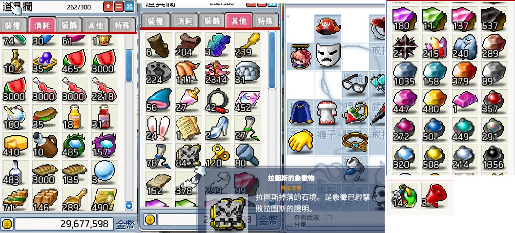 幾百張卷軸+礦石 雪花783個 拉圖斯象徵84個