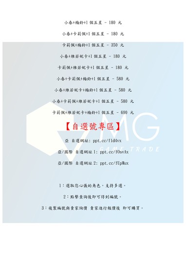 【初始號】【MG數碼】 亞服 國際服 多石號 多鑽石號 初始號 自抽號 自選號 自選組合