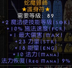 ★S12天梯★法師 手工項鍊 護身符 高施 +2技能 +23力量 +18能量