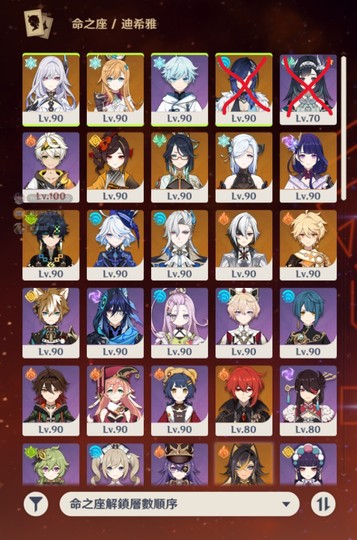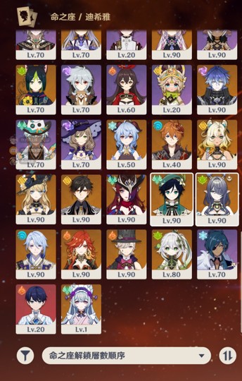 【男、60等、34金角、40金武】60等 男 五星限定滿命*9 五星武器滿精*2 絲柯克 芙寧娜 那維萊特