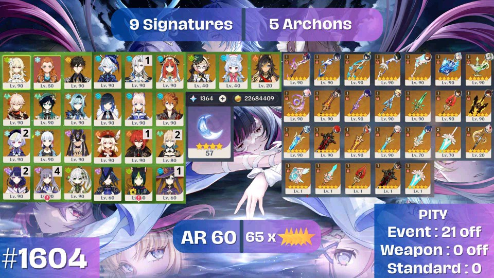 【女、60等、38金角、26金武】⭐1命水龍+2命雷神+優菈+妮露+賽諾+萬葉+心海+夜蘭+風草神皆專武_克洛林德