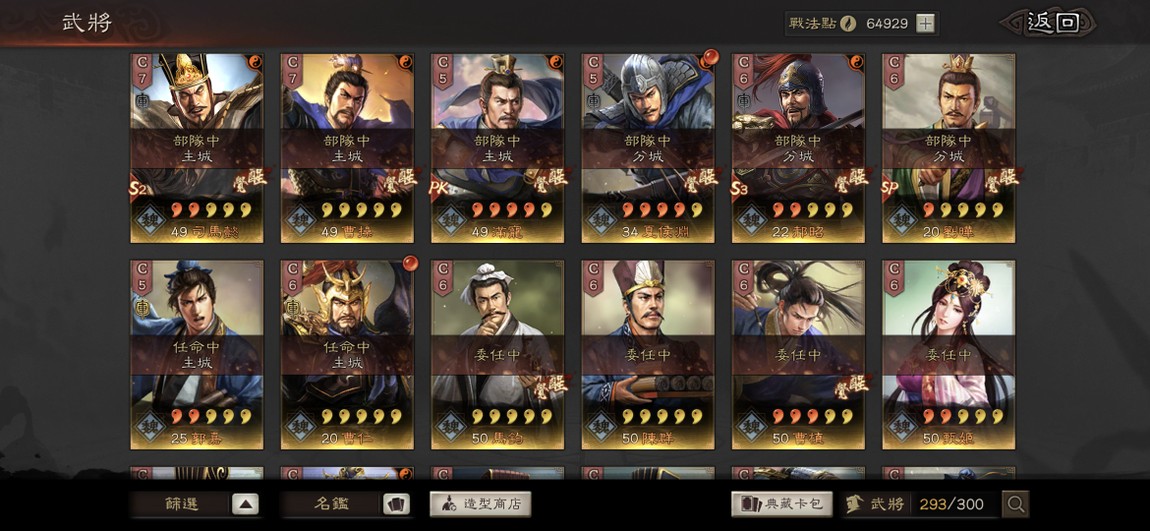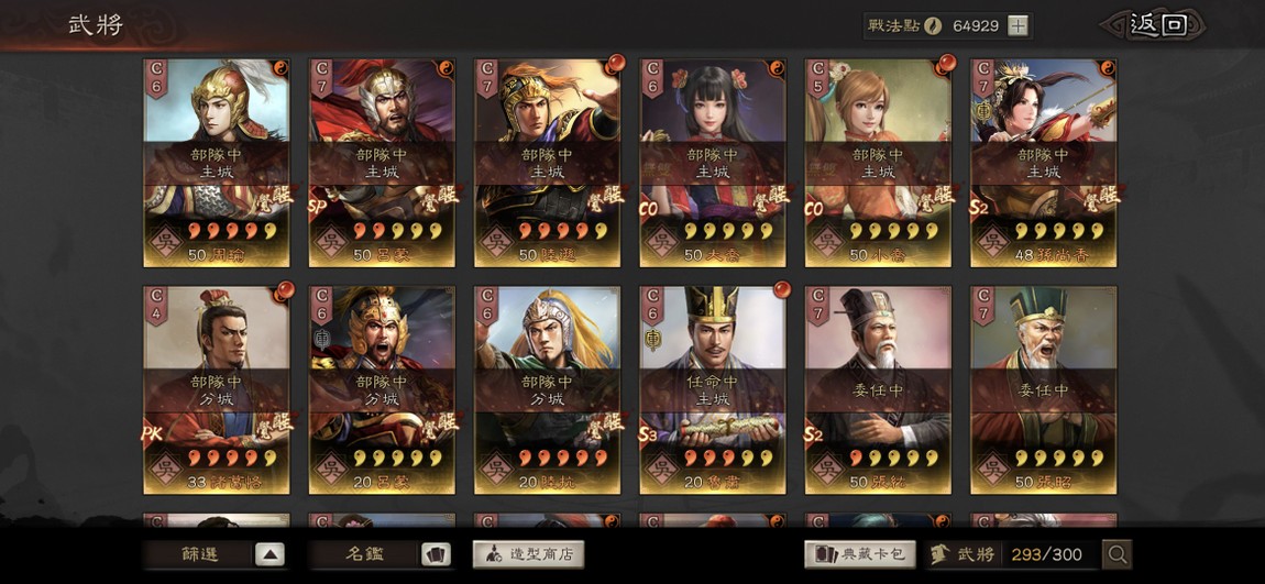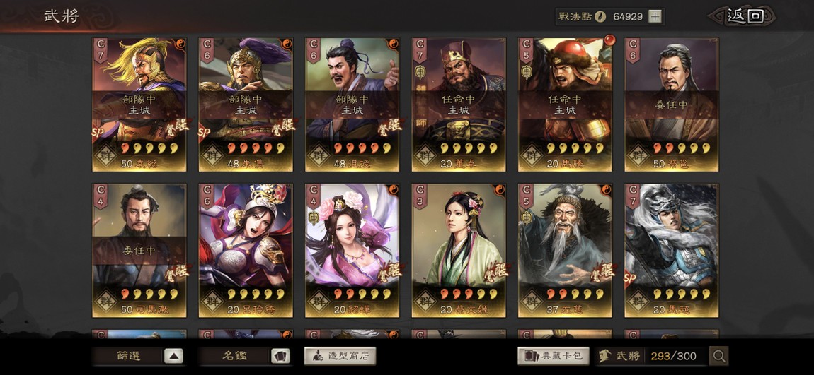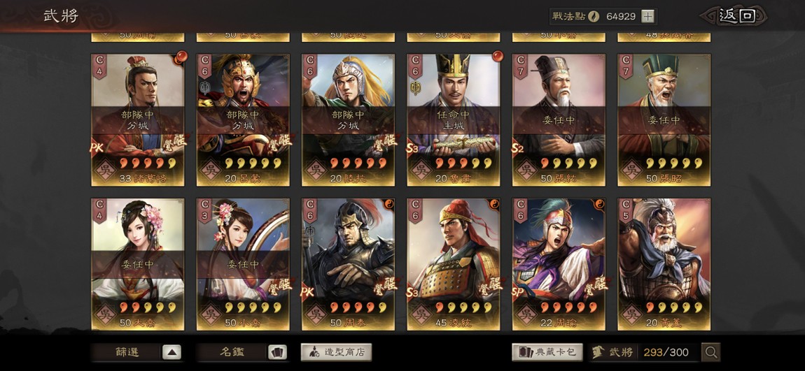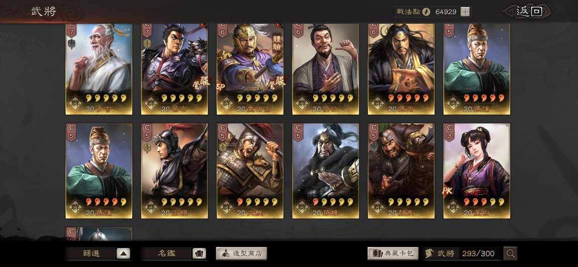 動態:司馬懿、郝昭、姜維、張飛、SP關羽、周瑜、陸遜、孫尚香、SP袁紹、SP朱儁、呂布、貂蟬、張角、左慈
