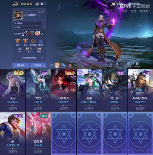 【G帳手機未綁、白銀、V1、16英、8造】單信箱整組給,潘音暗淵魔法及一些造型