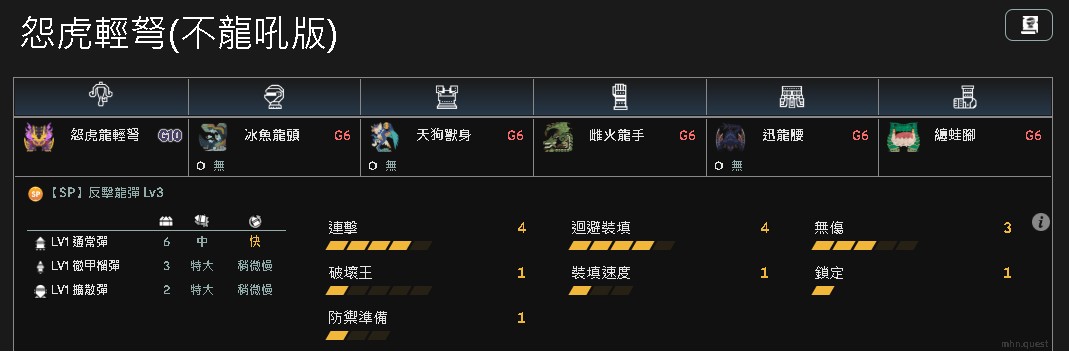 發動技能: 裝填防禦3+防禦性能+後座力減輕2+雷屬強化3