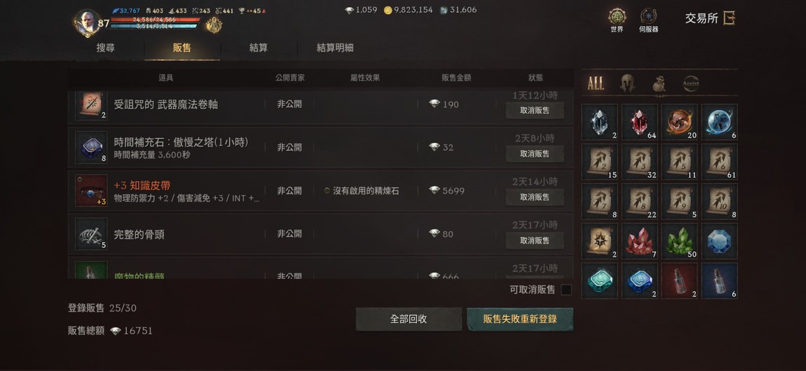 護身符 亞丁17,扭曲.恐懼都15,地獄16,殘酷13,不滅11,死神7,樂園15
