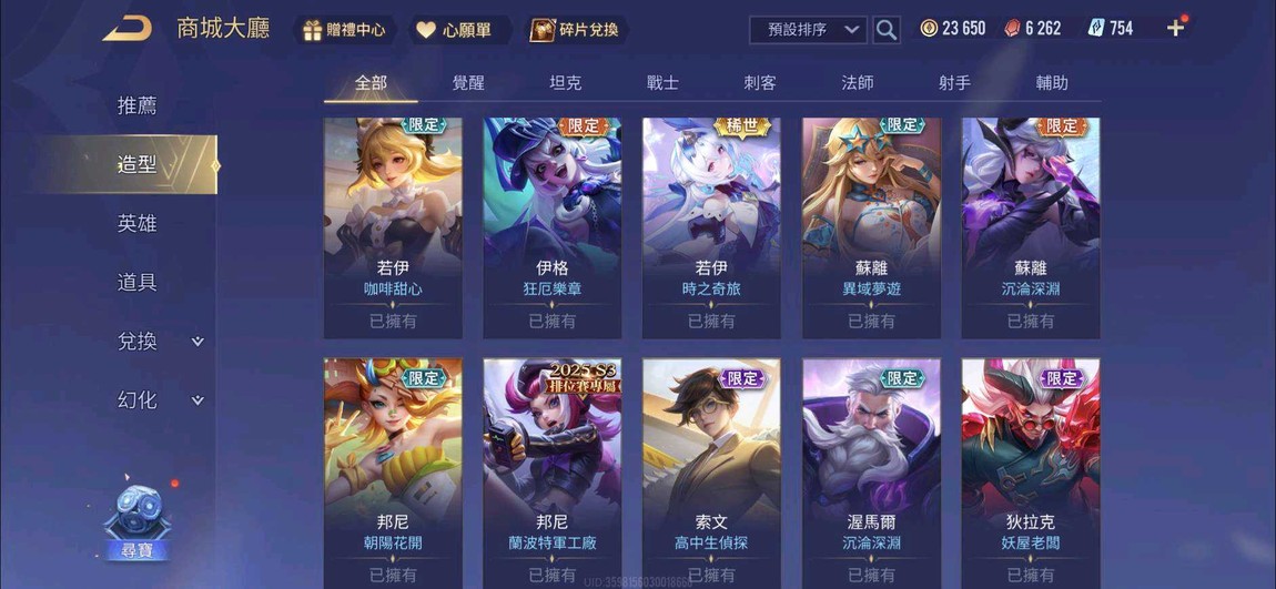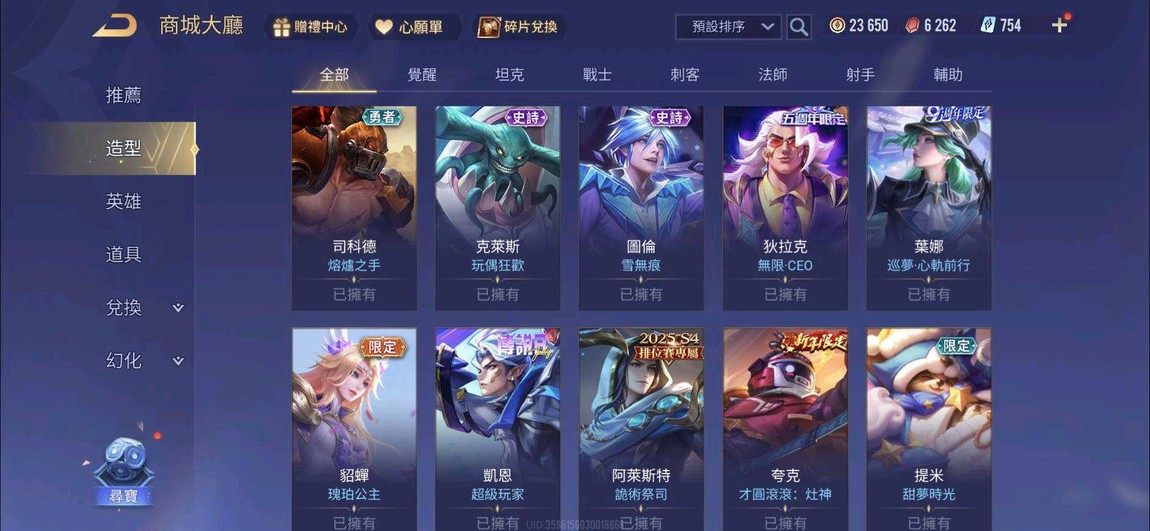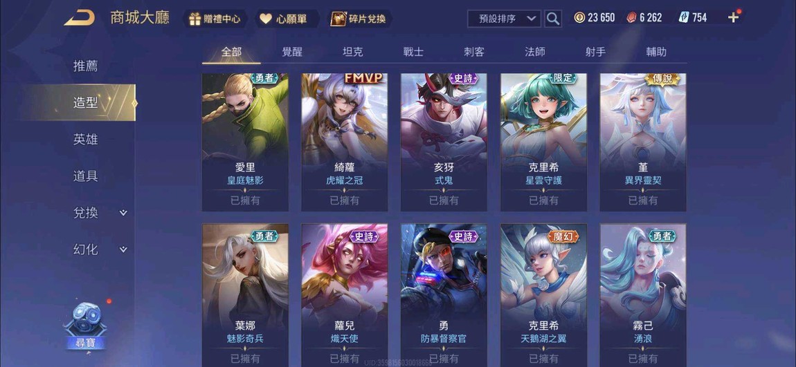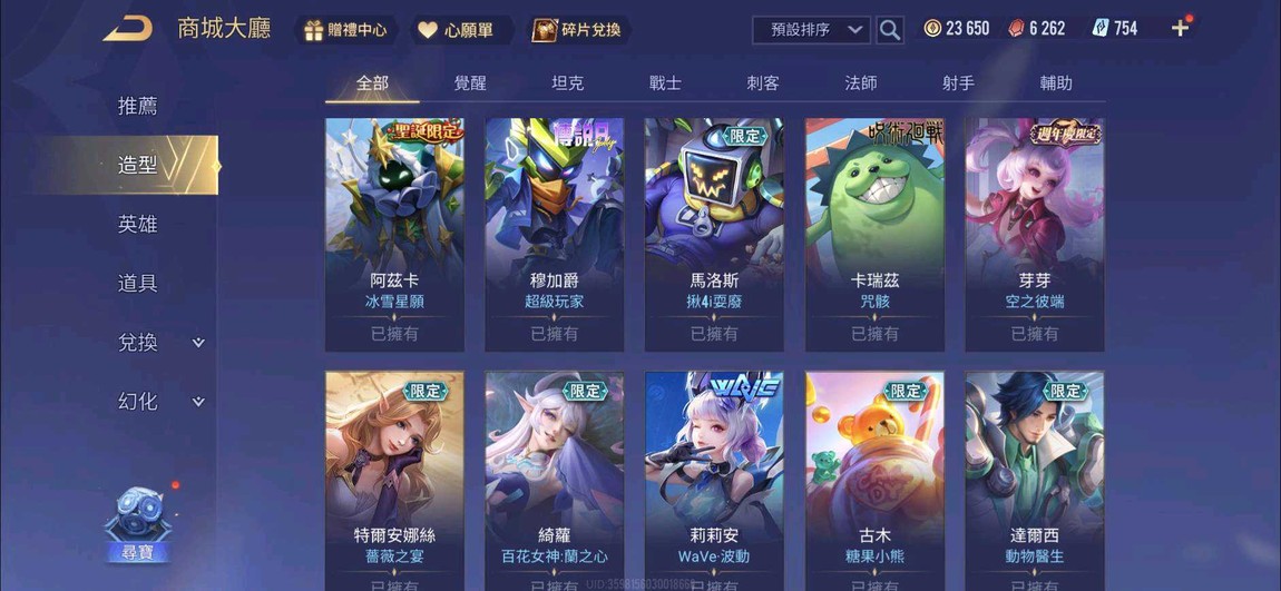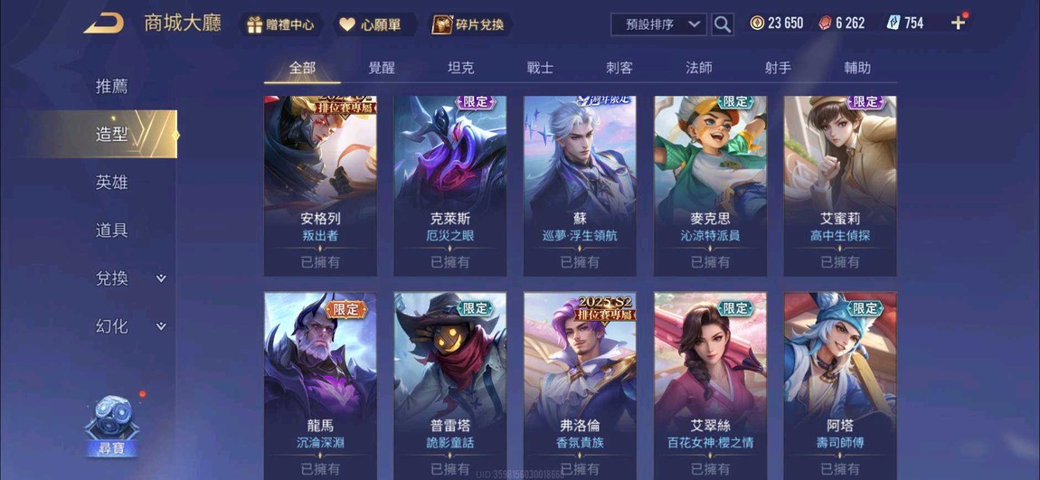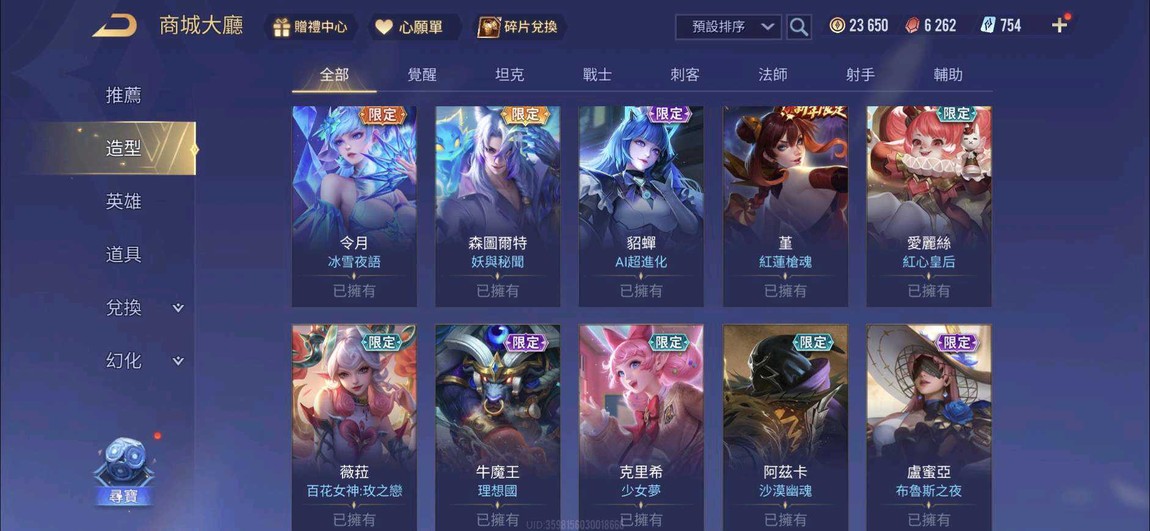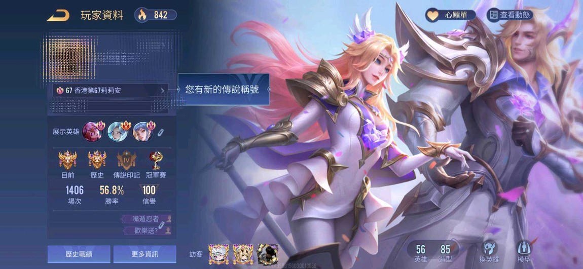 【Garena帳無綁無連、璀璨傳說、V4、56英、85造】傳說對決莉莉安傳說稱號帳號|多款限定造型